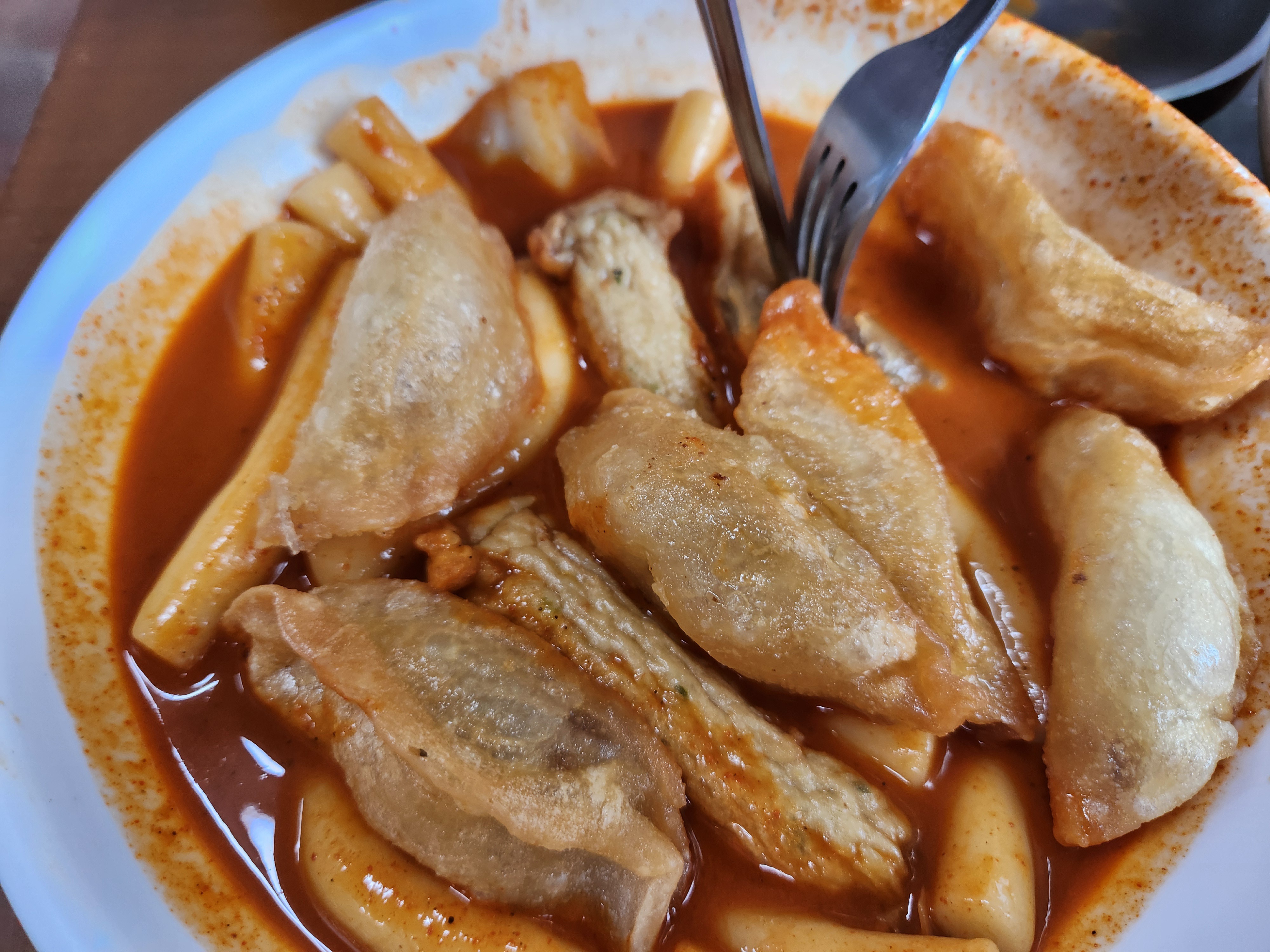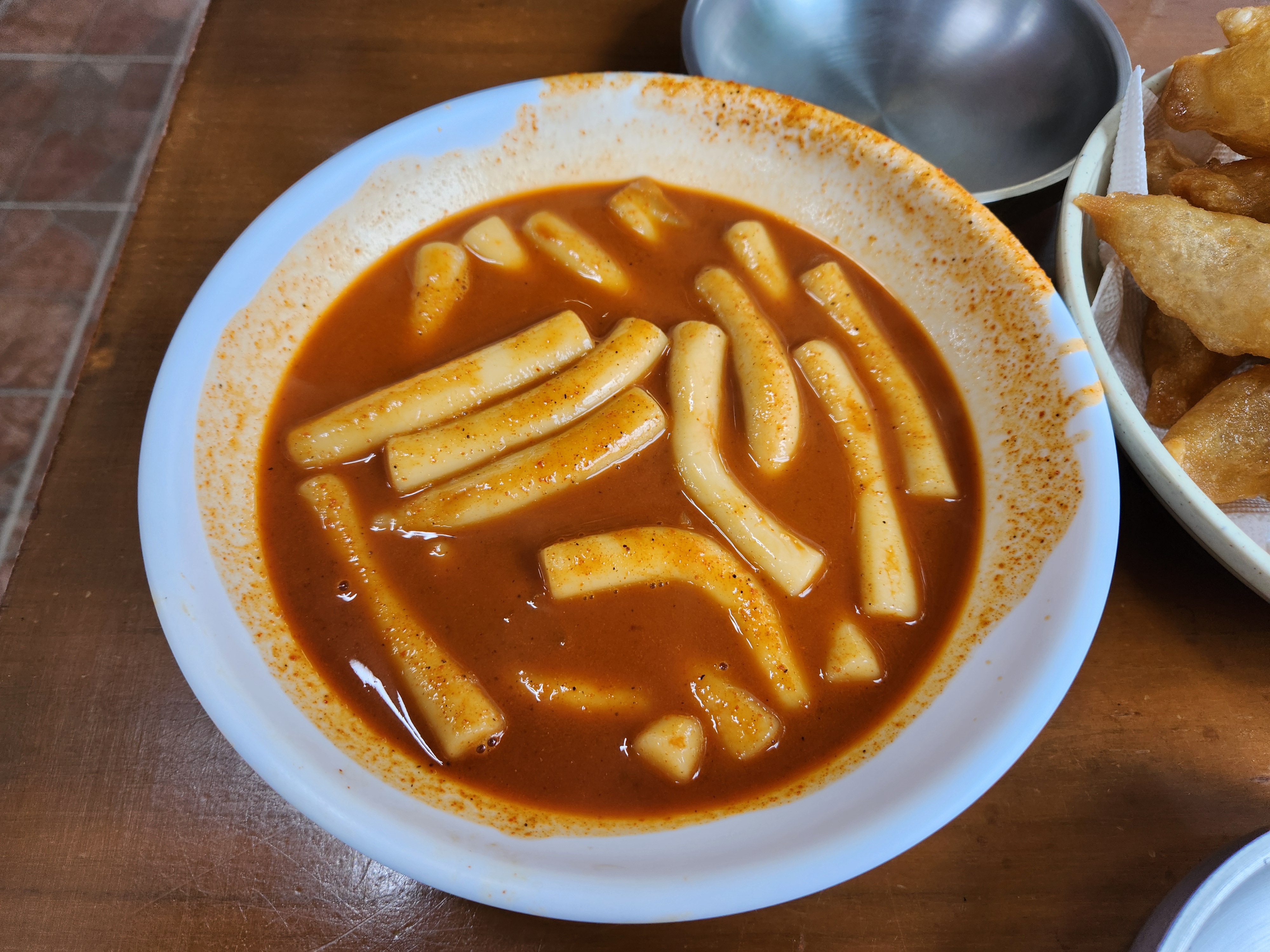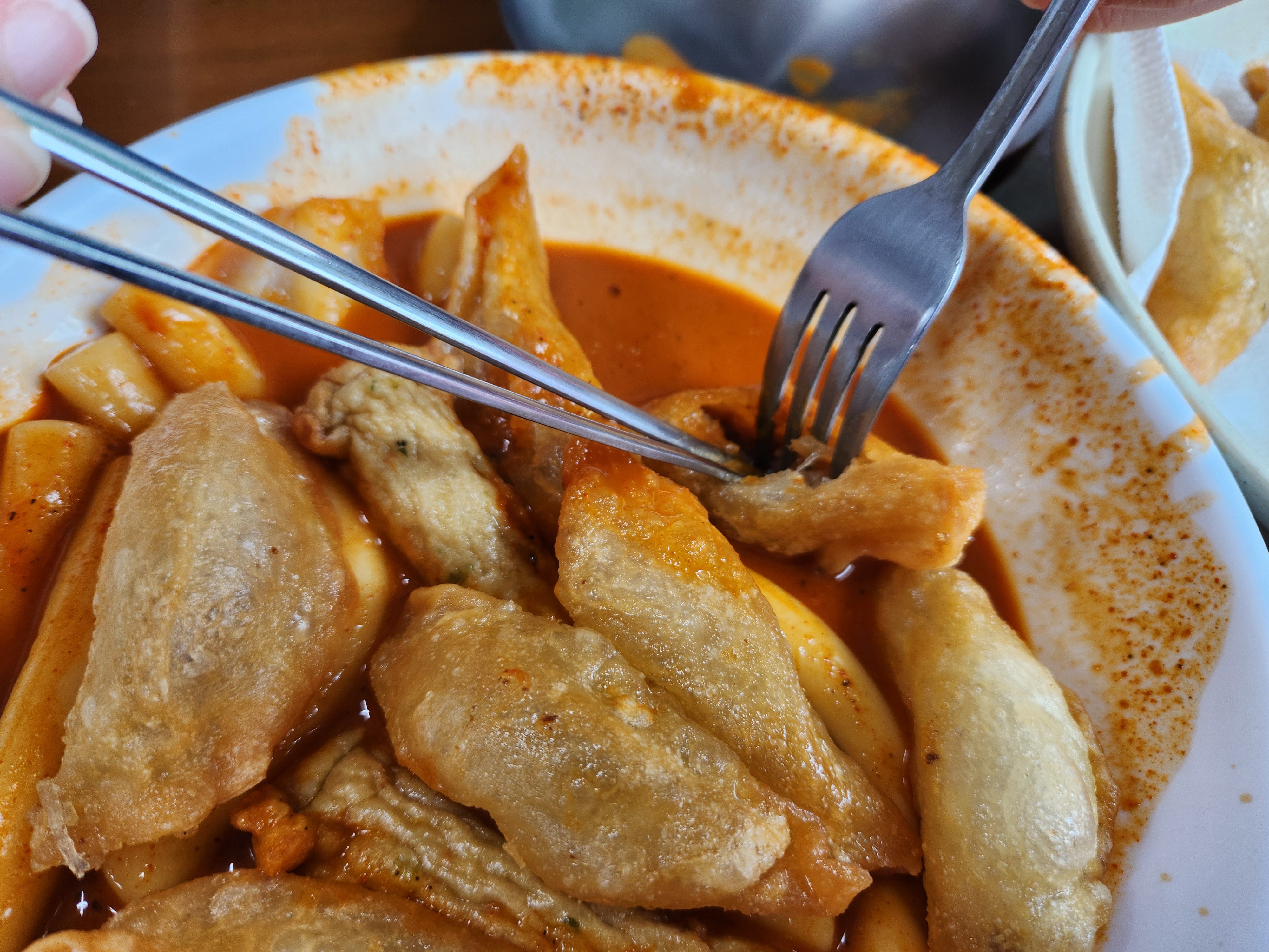 특히 윤옥연할매떡볶이의 짝꿍은 바로 납작만두와 오뎅이죠! 얇은 피의 납작만두는 속이 거의 비어있어 매콤한 떡볶이 국물을 듬뿍 머금습니다. 겉은 살짝 바삭하고 속은 촉촉한데, 국물 맛이 제대로 배어들어 환상적인 맛을 선사해요. 오뎅도 말할 필요 없이 쫄깃하고 국물과 찰떡궁합이었어요.