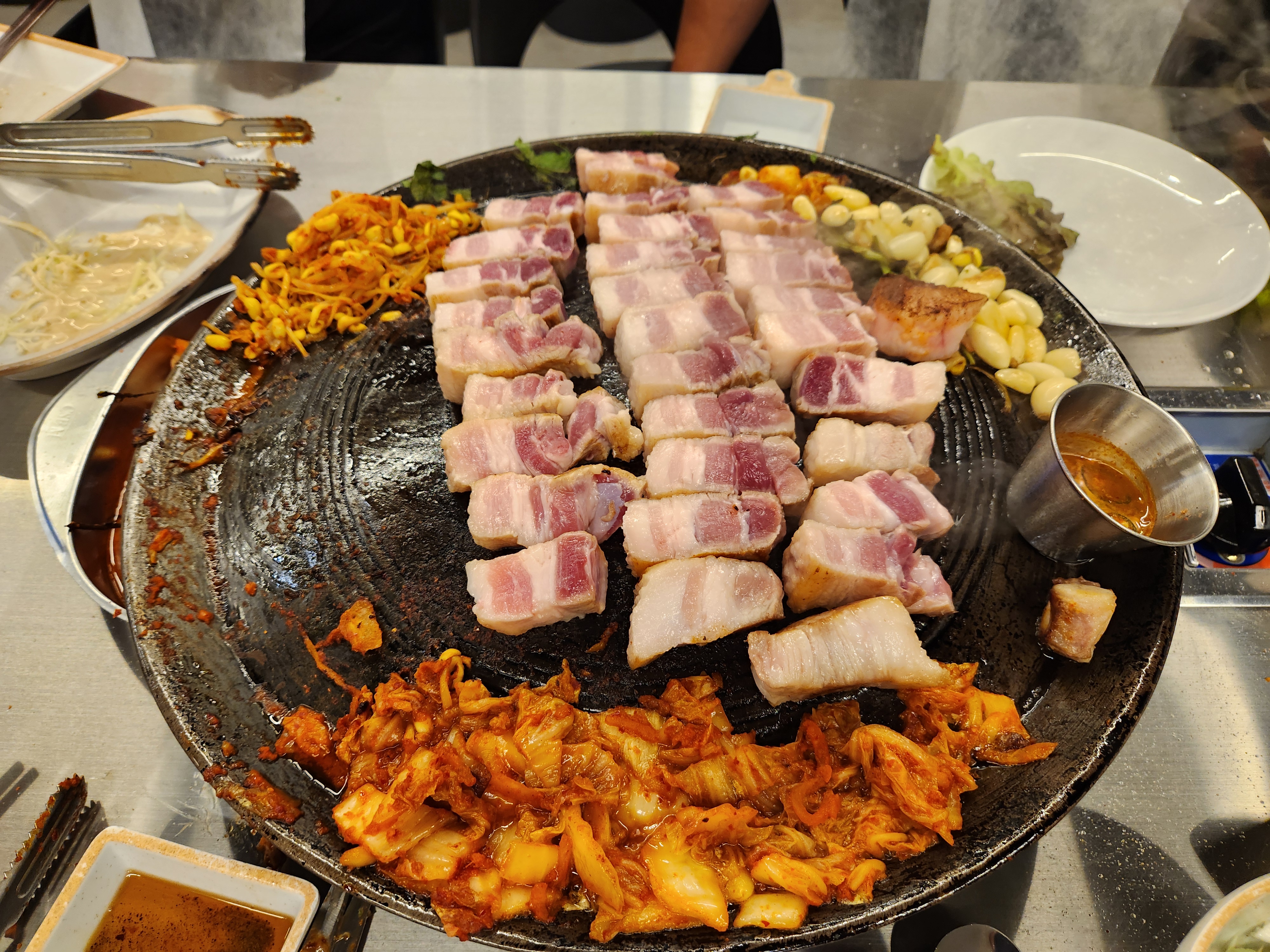 진짜 회식의 끝은 역시 솥뚜껑 위에서 지글지글 익는 삼겹살 아닐까 싶다.