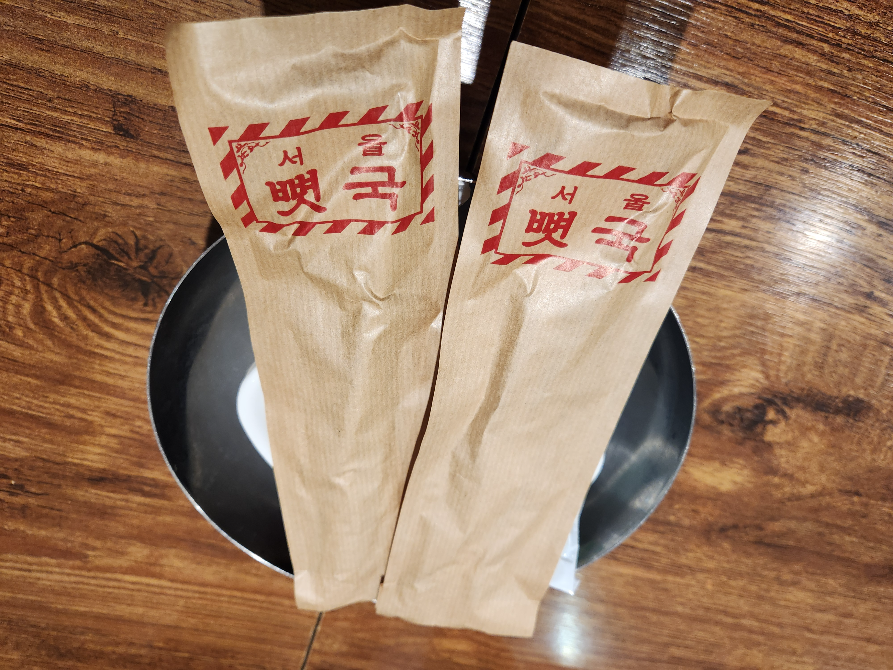 수저를 종이에 넣어서 1회용으로 주신다.