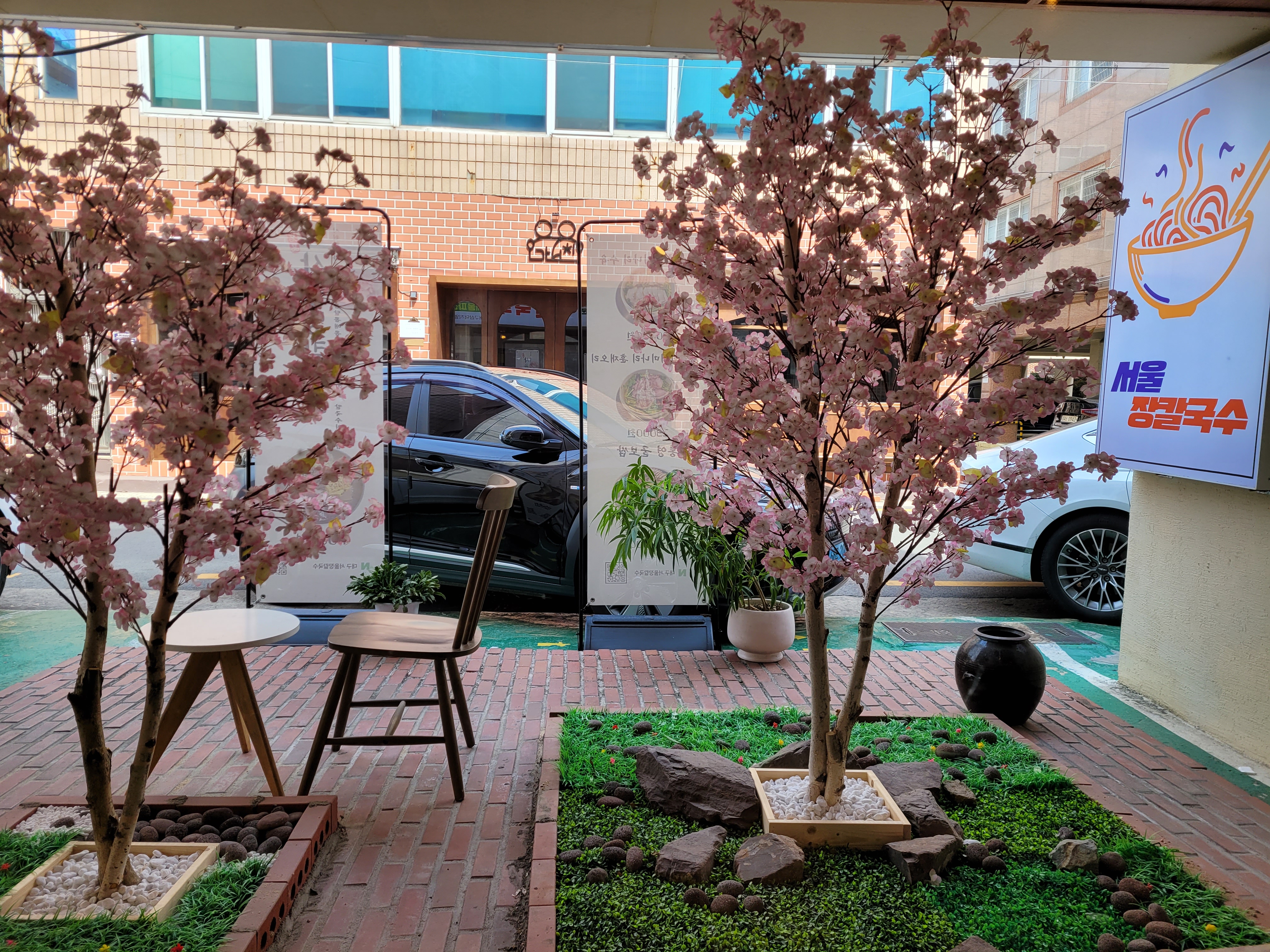 가게 앞에 2~3대 주차를 할 수 있다.